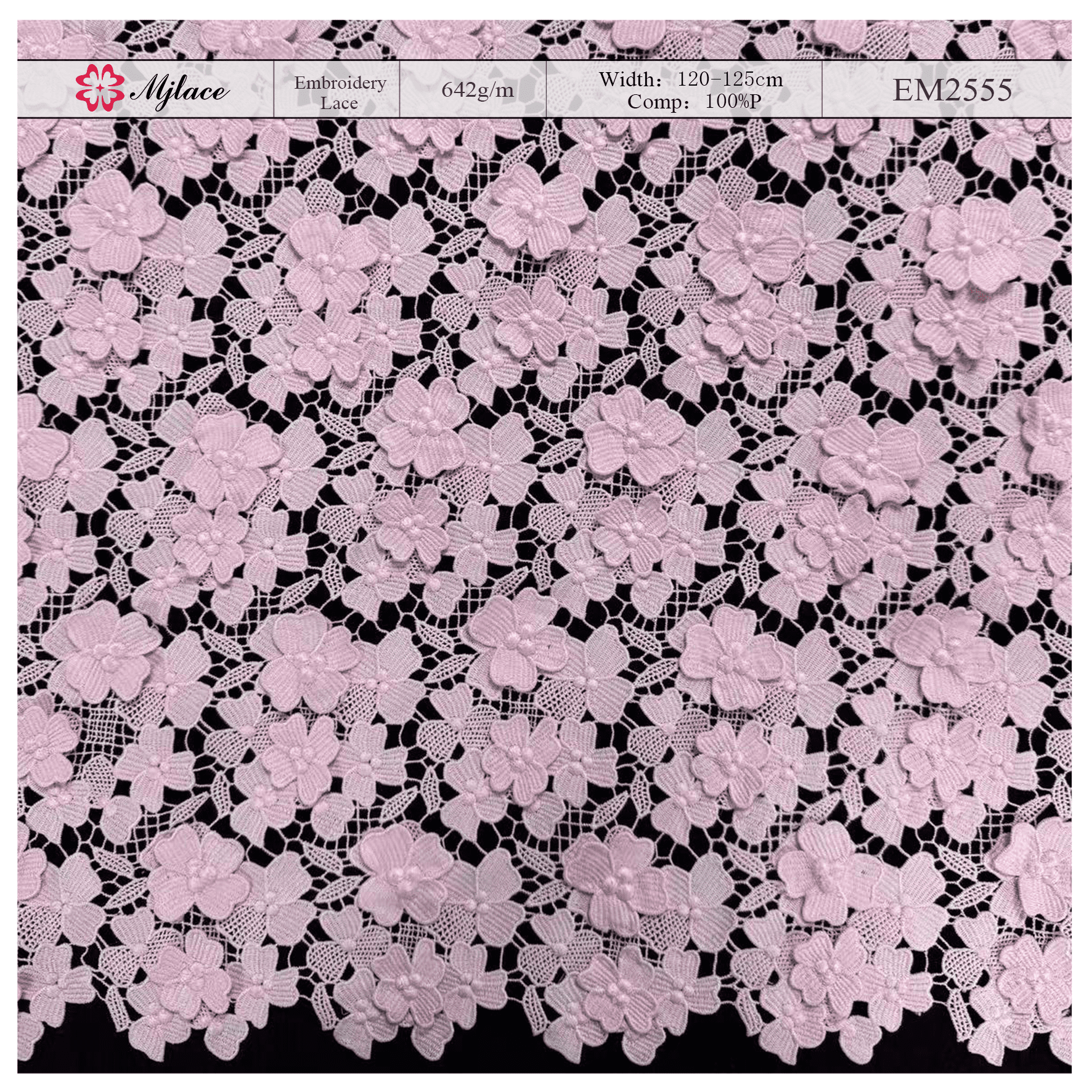Perfect for bridal gowns, evening wear, lingerie, blouse accents, and home décor projects, EM2800 can be customized in color and scale to meet specific design needs. Its timeless pattern and refined craftsmanship make it an excellent choice for designers seeking quality, versatility, and elegance in lace.